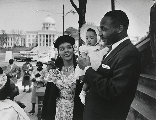 Martin Luther King Jr. with Coretta Scott King and their daughter Yolanda on the steps of the Dexter Avenue Baptist Church Dan Weiner (1919–1959) Gelatin silver print, 1956 National Portrait Gallery, Smithsonian Institution © Sandra Weiner