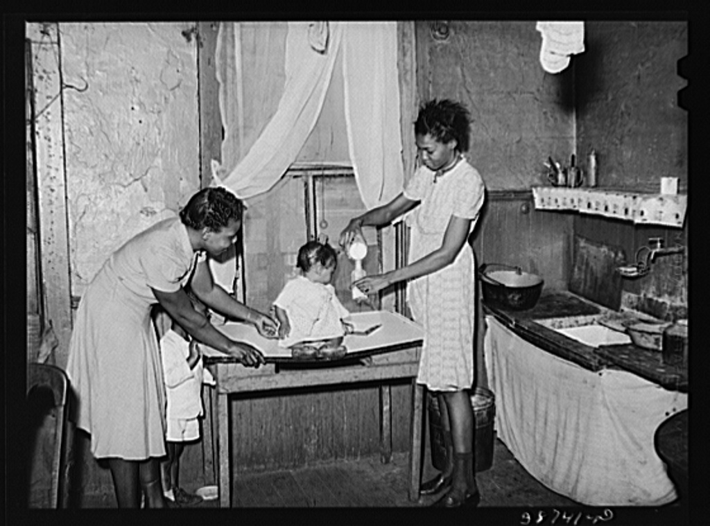 Preparing milk for baby. Family is on relief. Chicago, Illinois