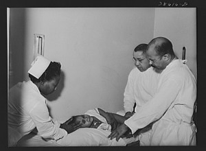 Examining baby at clinic of Negro hospital. Chicago, Illinois