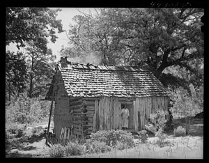Midwife in doorway of her house. Near Siloam, Greene County, Georgia