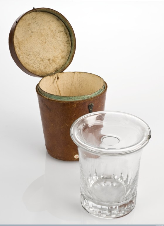 This breast reliever is known as a ‘tire-lait’ and is French for breast pump. Mothers used breast pumps, or relievers, to remove their milk. These mothers could not breastfeed their babies. This glass example consists of a cup with a small hole in the top. The nipple was placed in the hole to collect the milk. The milk was then fed to the baby via a bottle. Doctors of the period said babies should be breastfed by the mother if possible, or a wet nurse of ‘good moral character’. Babies during the 1800s might also be fed unboiled cow’s milk, a sugar and water mix from a bottle, or mixtures of milk and sugar with either bread or flour from vessels called pap boats.